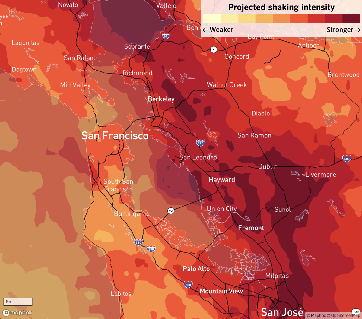 Bay Area earthquake risk: Map shows danger zones, expected damage