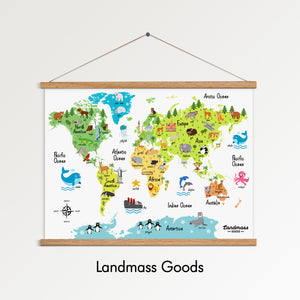 Colorful Children’s Animal World Map Poster 12×16 inches โ Landmass